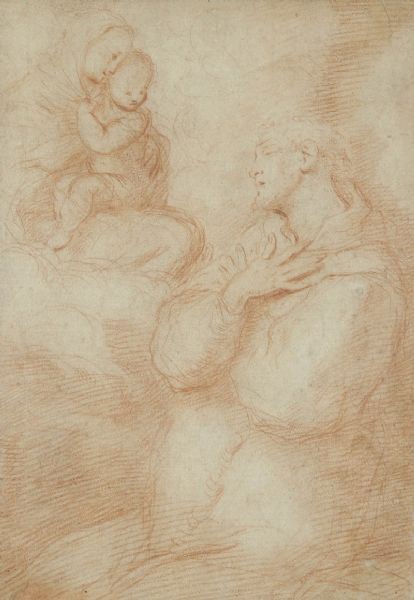 Extase d'un Saint au pied de la Vierge à l'Enfant