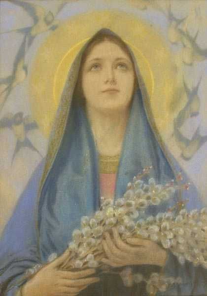 Matka Boska z baziami i jaskółkami