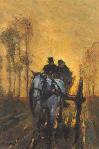 Paar auf Einspänner bei der Heimfahrt zur Abendzeit