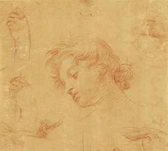 | Tête de jeune garçon, études subsidiaires de mains et visage | |