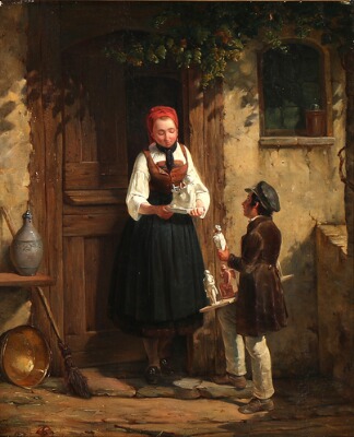 | A young boy offering Bertel Thorvaldsen's figurine “Amor playing the lyre” to a young girl | |