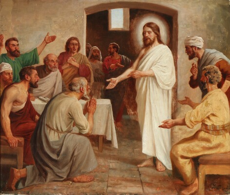 | The resurrected Jesus showing his wounds to the doubting Thomas. | |