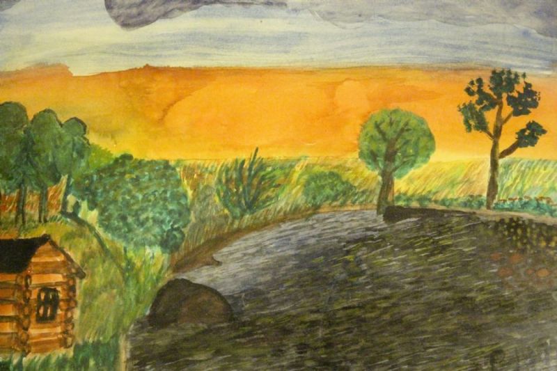 Timmerstuga vid sjö