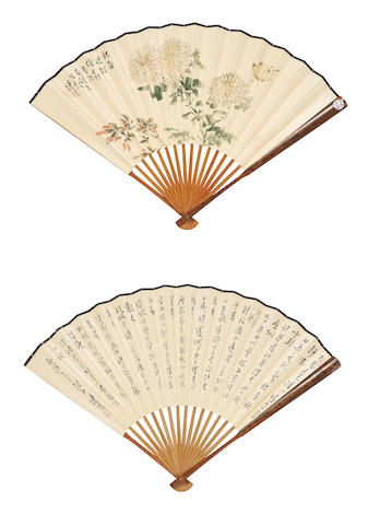 Goji Tree and Chrysanthemum; Calligraphy in Running Script