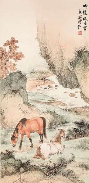 HANGING SCROLLS DEPICTING HORSES IN SEASONAL CHANGING LANDSCAPES