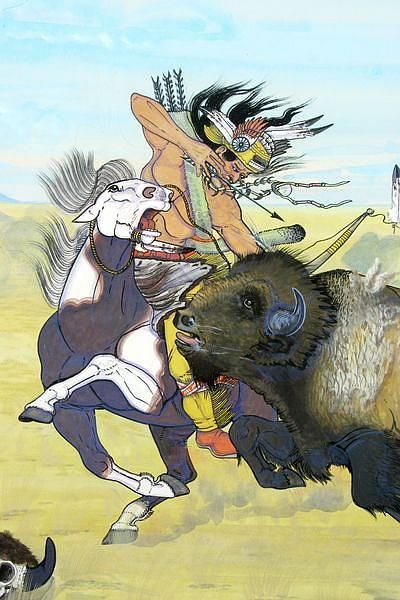 Indians on Horseback Hunting Buffalo