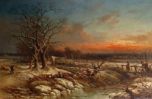 A sheep herder in a winter landscape