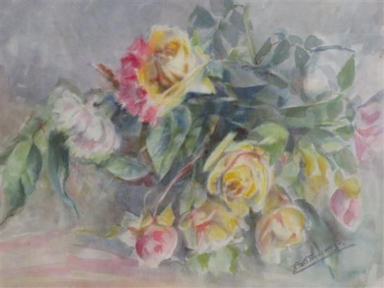 Yellow and pink rose still life in a wash effect