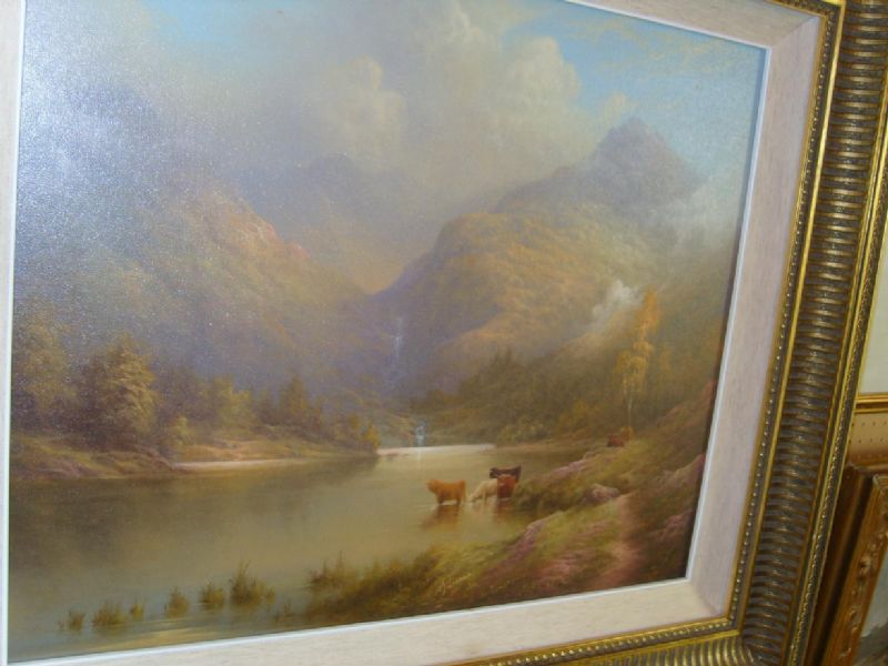 Highland landscape with cattle watering