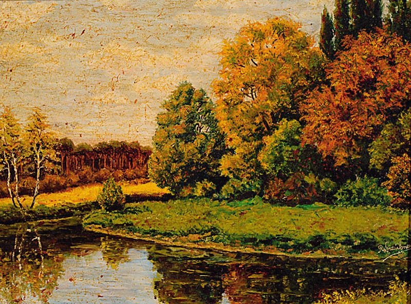 Herbstliche Landschaft mit bewaldetem Bachlauf