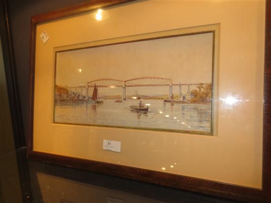 Railway bridge and river scene