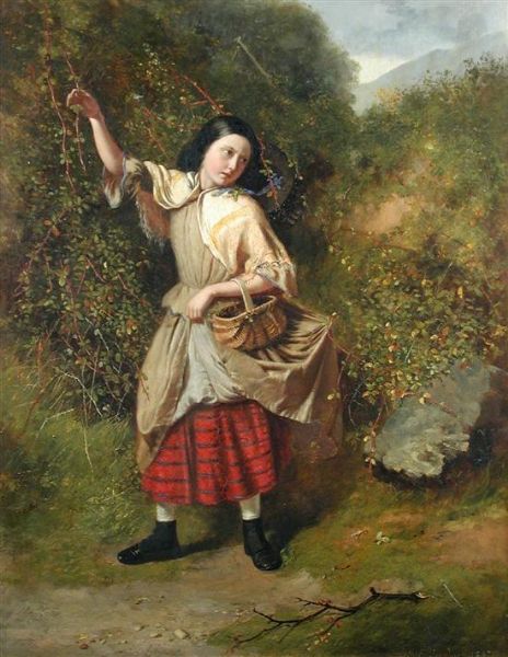 A Scottish Girl Picking Blackberries, and Caught on a Bramble