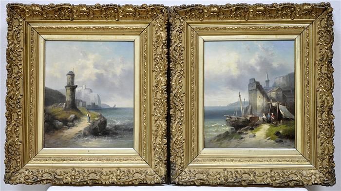 Pendants: Meeresküste mit Leuchtturm bzw. Fischerdorf.