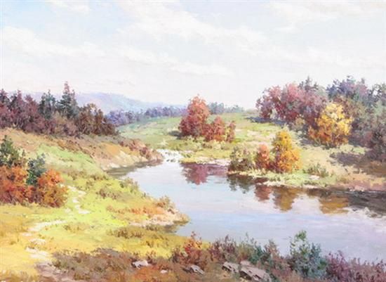 EARLY AUTUMN LANDSCAPE WITH CREEK