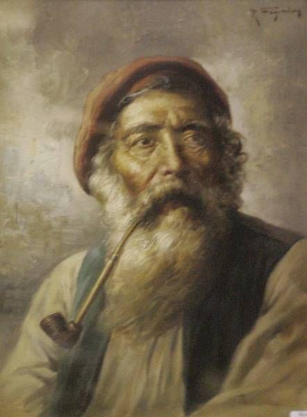 Portrait of a bearded man smoking a pipe