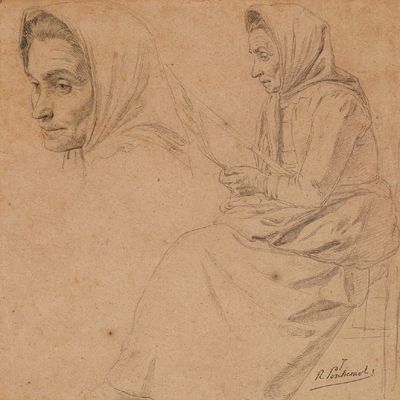 Study of an Old Woman in Headscarf from Two Angles