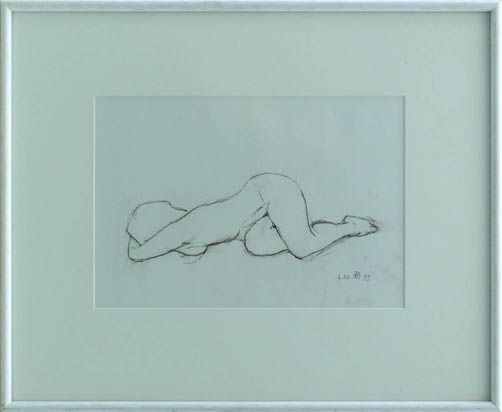 Liegender Akt, den Kopf in der Armbeuge versteckt