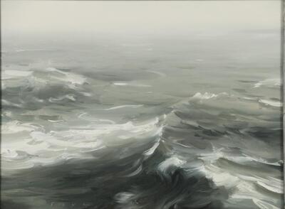 "Monhegan", oil on masonite, signed and titled verso, dated 2014, in black and silver box frame, OS: 13 1/2" x 17 1/2", SS: 11 1/2" x 15 1/2". Fine condition. | |