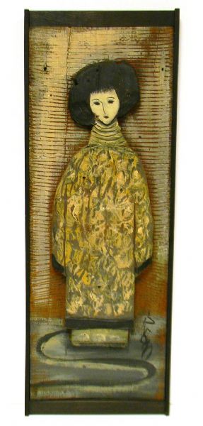 depicts full body geisha figure in high relief