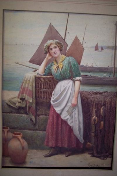 Young Lady Reading a Letter on Newlyn Harbour Wall