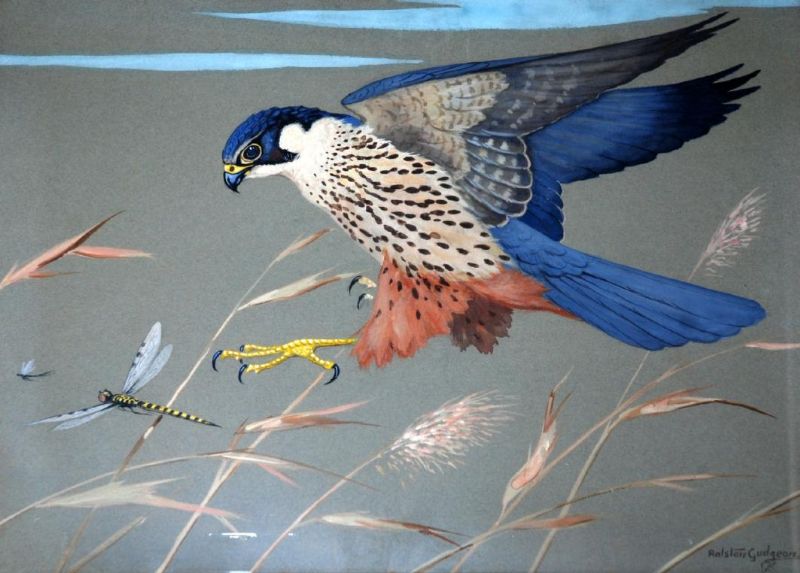 BIRD OF PREY ON A BRANCH AND BIRD OF PREY WITH DRAGONFLIES