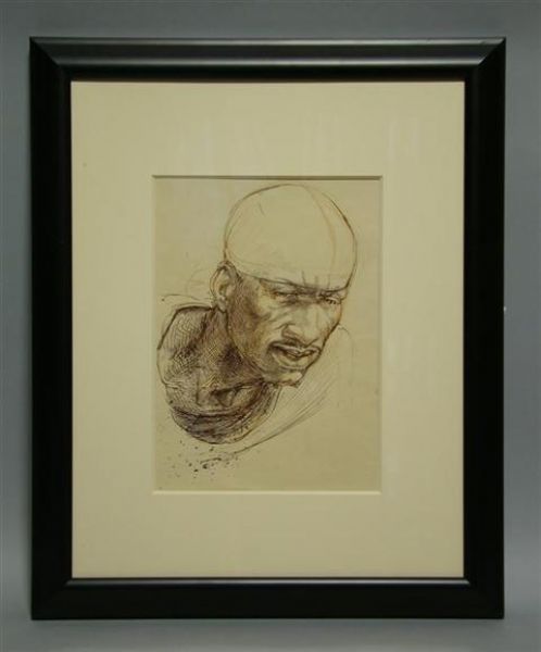 Ink over red chlk on paper