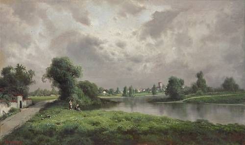 Figures near a Stream on a Stormy Afternoon