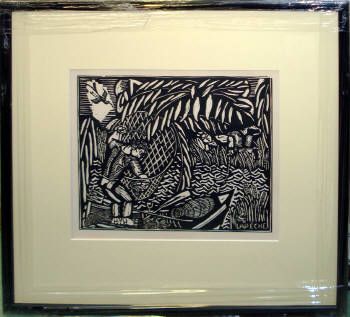 Woodcut framed, 2 items