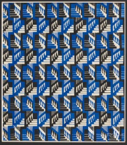 | Projet de tissu géométrique bleu blanc et noir pour la Maison Bianchini-Ferier | |