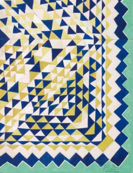 Projet de tissu géométrique bleu rose vert et jaune pour la Maison Bianchini-Ferier