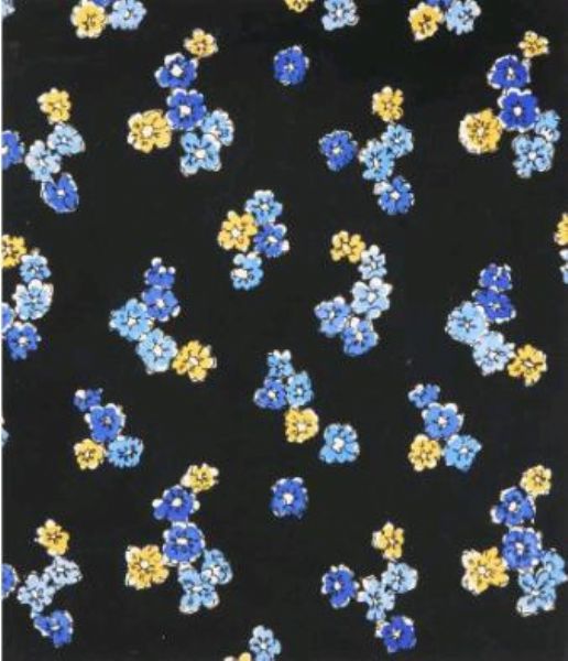 SEMIS DE FLEURETTES BLEUES ET JAUNES SUR FOND NOIR