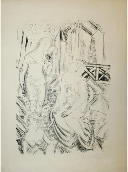 TROIS BAIGNEUSES DEVANT LE PORT DE SAINTE-ADRESSE
