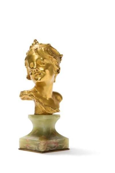 | Enfant couronné, buste en bronze doré, socle en onyx, Siot-Decauville fonseurs, sur l'épaule : R. LARCHE, | |