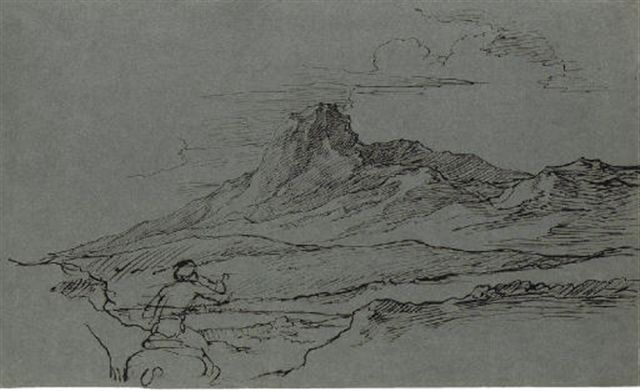 | Pen and brown ink on blue-grey paper, unframed | |