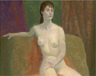 | Seated female nude, three-quarter-length, on a green sofa | |