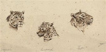 | A study of the heads of a jaguar, a leopard and a tiger; and A study of lions | |