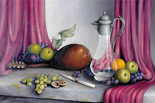 STILL LIFE WITH FRUIT, MANDOLIN & PITCHER