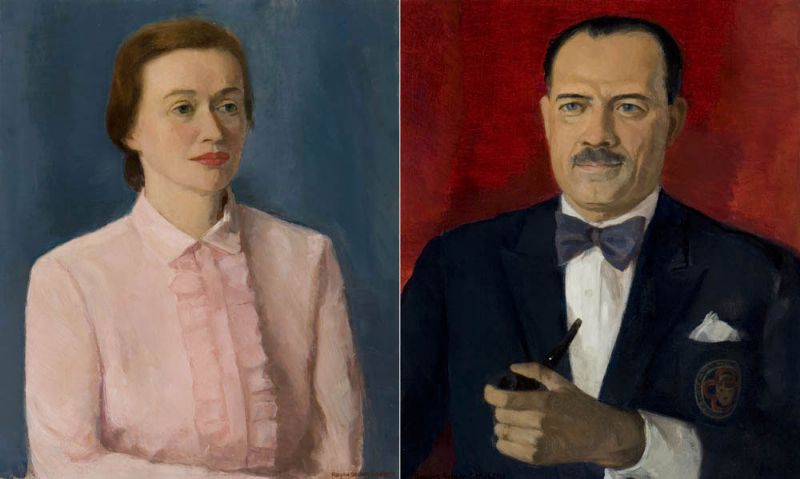 | PORTRAIT OF A LADY DRESSED IN PINK and PORTRAIT OF A GENTLEMAN WITH HIS PIPE. | |