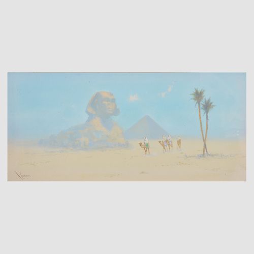 | BEDOUIN IN FRONT OF THE SPHINX WITH THE PYRAMID OF KHAFRE BEYOND | |