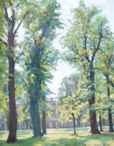 | Blick vom Schloßpark auf den Seitenflügel des Charlottenburger Schloßes | |