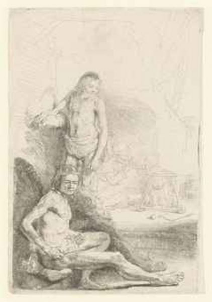 | A nude Man standing, another seated, with a Woman and a Baby lightly etched in the Background (B., Holl. 194; H. 222) | |