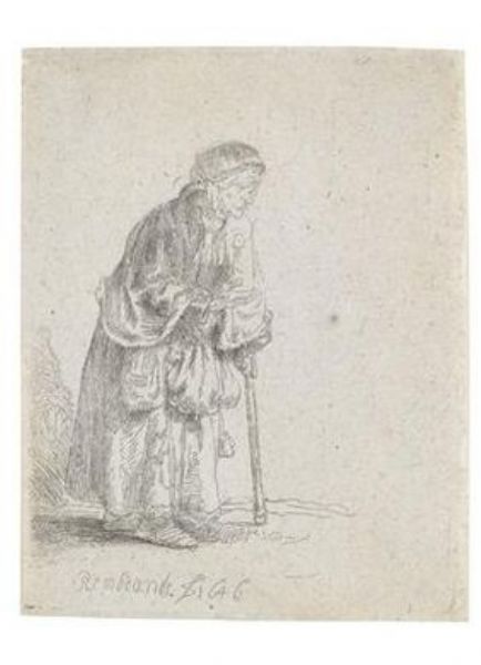 Beggar woman leaning on a stick