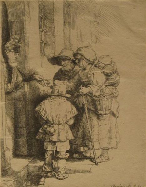 BEGGARS RECEIVING ALMS AT A DOOR