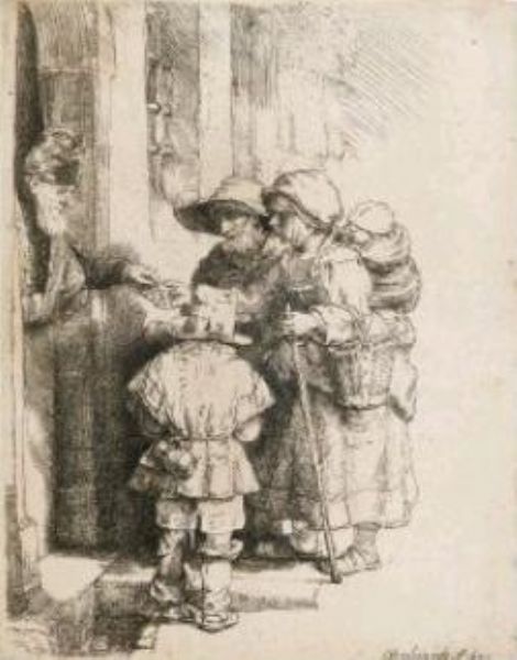 BEGGARS RECEIVING ALMS AT THE DOOR