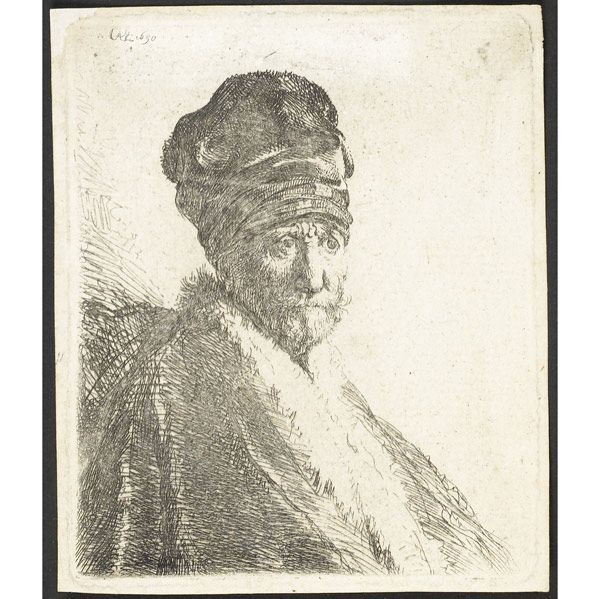 | Bust of a Man Wearing a High Cap, Three-Quarters Right: The Artist"s Father, 1630 | |