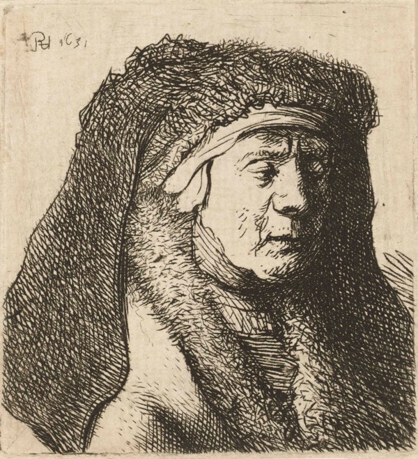 | Bust of an old Woman in a furred Cloak and heavy Headdress | |
