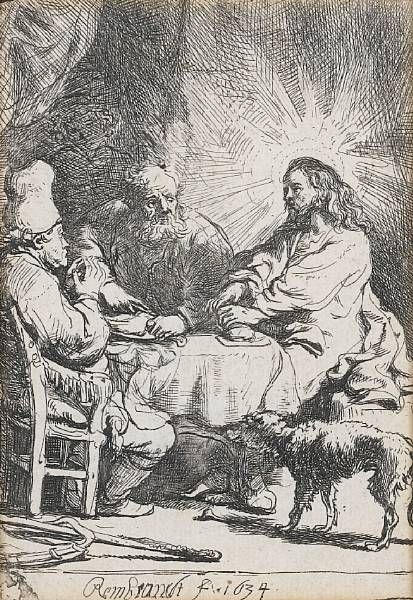 Christ at Emmaus: The smaller plate (Bartsch 88)