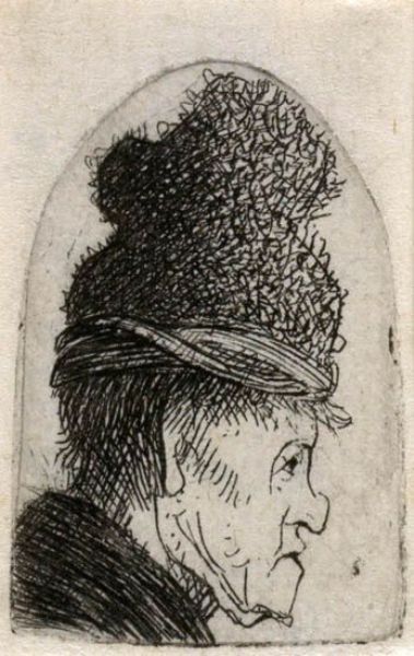 Grotesque Profile: Man in a High Cap.
