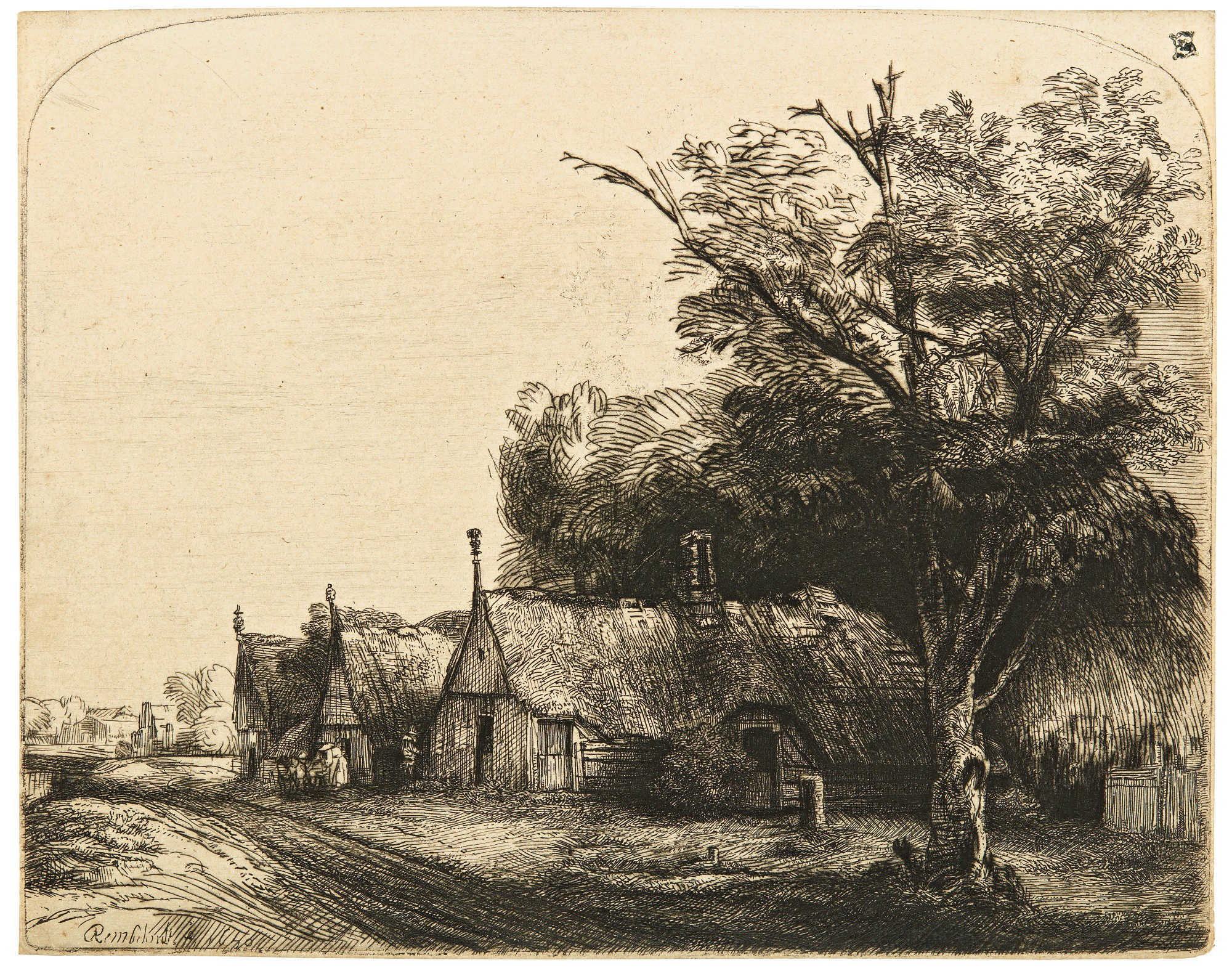 | LANDSCAPE WITH THREE GABLED COTTAGES BESIDE A ROAD (BARTSCH, HOLLSTEIN 217; NEW HOLLSTEIN 248; HIND 246) | |