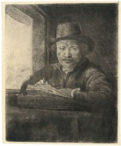 Self-Portrait drawing at a Window (Bartsch, Hollstein 22; Hind 229)